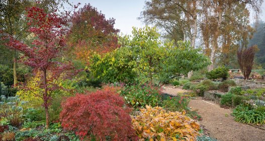 A palette of colour bursts to life in spring and summer with tulips, bulging borders, tropical leafy plants, succulent exotics and a meadow full of wildflowers and wildlife. Timeless structure draws the eye in autumn and winter with a masterpiece of pattern and topiary and a finale of snowdrops and colourful gems.